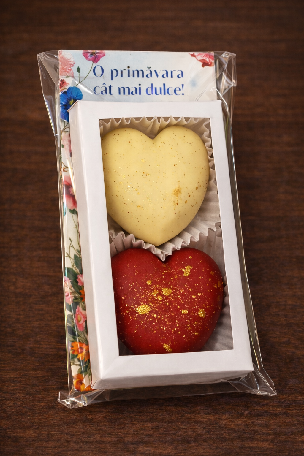 Cauți un mărțișor altfel anul acesta? Surprinde femeile speciale din viața ta cu acest set adorabil! Cele două inimi, presărate cu sclipiri aurii, sunt promisiunea unei primăveri pline de bucurie și iubire. Ambalat ÃŪntr-o cutiuță elegantă cu motive florale și purtÃĒnd urarea „O primăvară cÃĒt mai dulce!”, este cadoul modern care păstrează vie magia tradiției de 1 Martie.